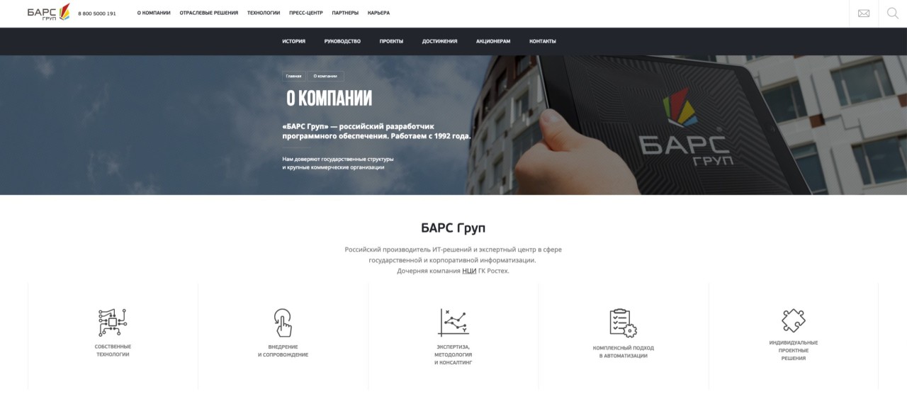 «Bars Group» is a subsidiary of the National Information Center (part of Rostech State Corporation). One of the first domestic IT manufacturers creating state information systems based on cloud technologies. Among the company's projects are the “Budget Planning” system for the Ministry of Finance of the Russian Federation, a single state information system in the health sector, a monitoring system for preparations for the 2018 World Cup, and others.
